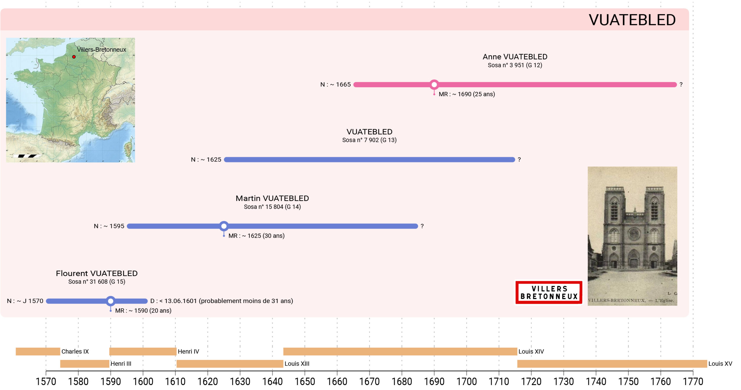 Mes Vuatebled sont de Villers-Bretonneux dans la Somme. Un trou dans les registres ne me permet pas d’établir avec certitude l’ascendance d’Anne mariée avant 1693 mais voici ce qu’elle semble être.