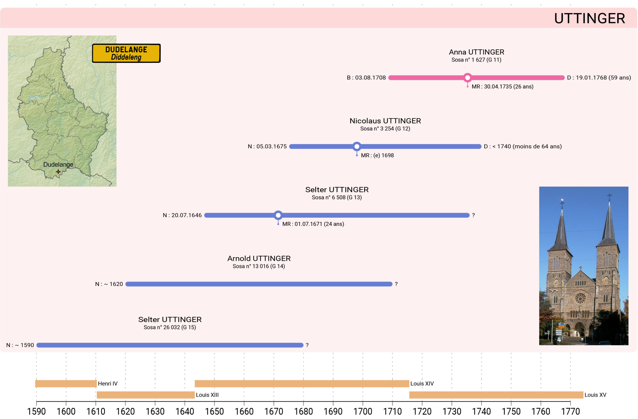 Mes Uttinger sont de l’actuel Luxembourg et plus précisément de Dudelange (en luxembourgeois : Diddeleng et en allemand : Düdelingen) avec ce fameux suffixe !