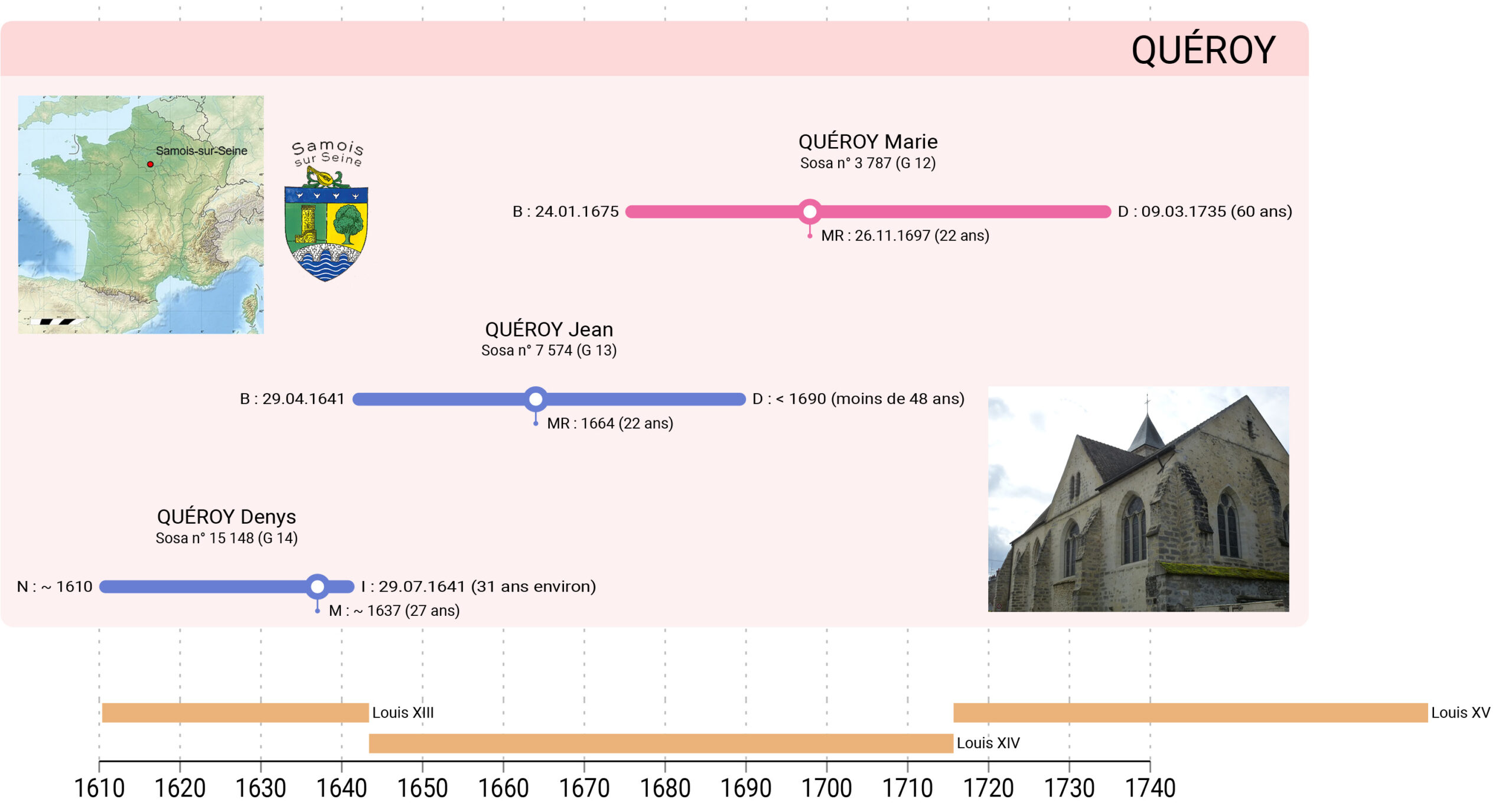 Le nom Queroy provient du vieux français quey ou queyroi, signifiant « carrefour » ou « point de croisement ». Ainsi, Queroy désignait initialement une personne vivant à un carrefour, à un croisement de chemins ou à proximité d’un tel lieu. Cette origine reflète une caractéristique géographique importante dans les sociétés rurales d’autrefois.
