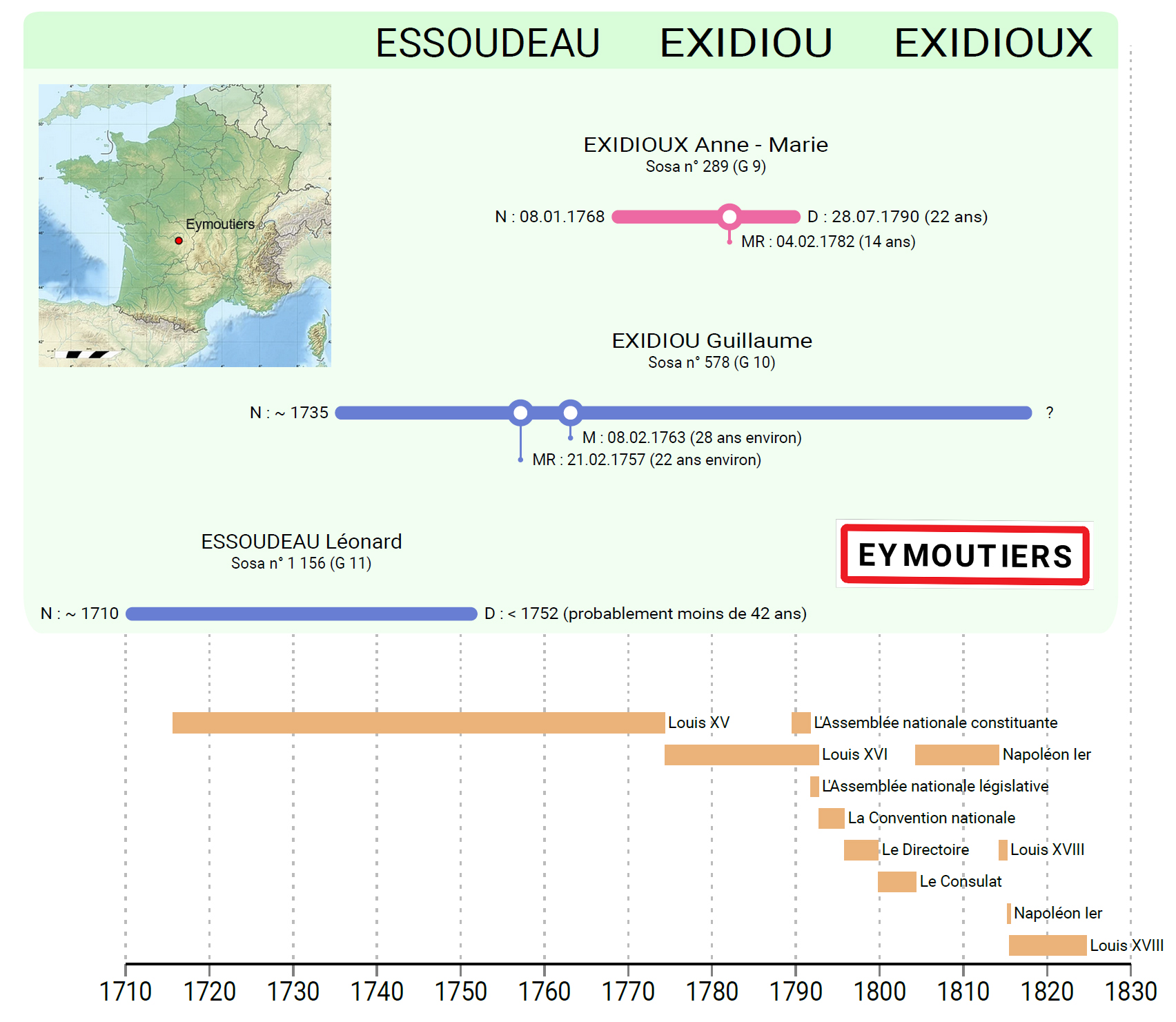 Une seule famille de ce nom est présente dans l’ascendance paternelle de mes enfants. La voici : une jeune femme mariée à 14 ans et morte à 22, son père et son grand-père.