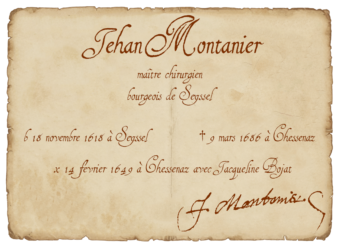 Par contre si c’est bien cette Clauda Mottaz qui se remarie en 1635 avec un autre maitre chirurgien, Claude Honneste de Rumilly, on peut établir le décès de Pierre entre 1631 et 1635 ! Claude Honneste habite toujours Chessenaz en 1650 et son épouse décède le 15 octobre 1650.