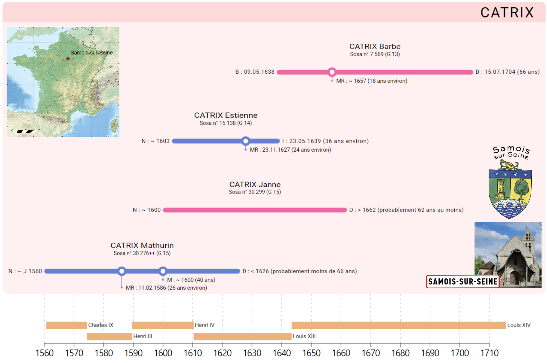 Mes Catrix vivaient à Samois-sur-Seine dans l’actuelle Seine-et-Marne. La branche est présente par deux fois grâce à une tante et sa nièce.