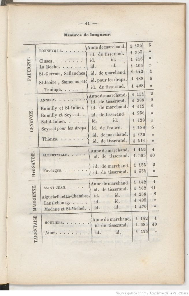 Par contre j’ai pu lire sur Gallica un ouvrage très proche : le Manuel pratique des poids et mesures, ou système métrique décimal comparé aux poids et mesures de Savoie, Aoste et Piémont, par l’abbé A. Miédan 1849.